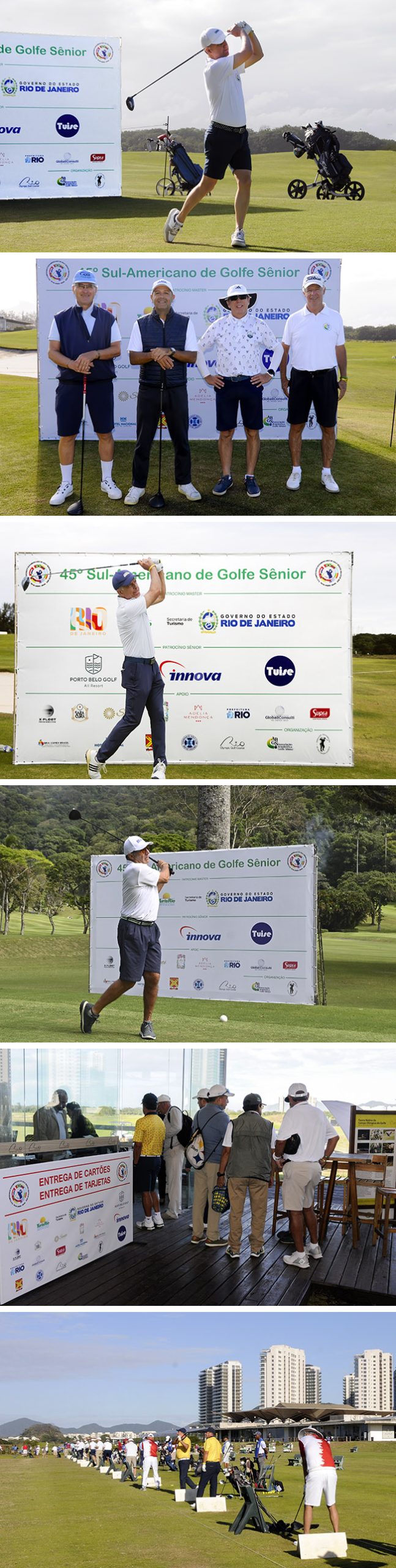 Após o primeiro dia de jogo – e do treino da segunda-feira -, nesta quarta é dia de descanso para todos. O campeonato será retomado na quinta e sexta-feira, com as duas rodadas finais de todas as categorias. O encerramento do maior torneio internacional de golfe já realizado no Brasil, com a presença de 320 golfistas de dez países, será na noite de sexta-feira, no Hotel Nacional do Rio de Janeiro, com o jantar de gala, entrega de prêmios, show, apresentação de escola de samba e queima de fogos. A organização é da Federação Sul-Americana de Golfe Sênior Amador (FSGSA) e da Associação Brasileira de Golfe Sênior, ambas presididas por Constantino Ajimasto Jr., o Grego.